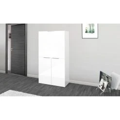 Ahd Amazing Home Design Meuble Buffet Design Salon 4 Portes 3 Tiroirs 220cm Blanc Brillant Pin…