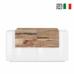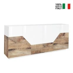Ahd Amazing Home Design Meuble Buffet Design Salon 4 Portes 3 Tiroirs 220cm Blanc Brillant Pin…