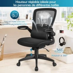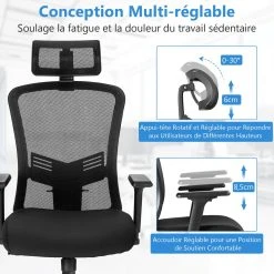 Costway Fauteuil De Bureau Chaise Ergonomique Pivotante En Maille Avec Support…