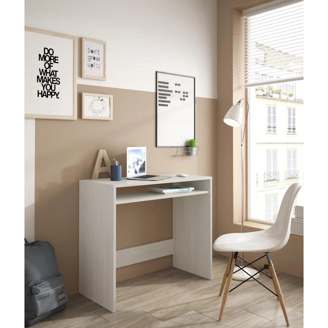 Points forts Alter Bureau avec étagère fixe sous la table, couleur blanche avec effet bois poli, Dimensions 79 x 87 x 43 cm