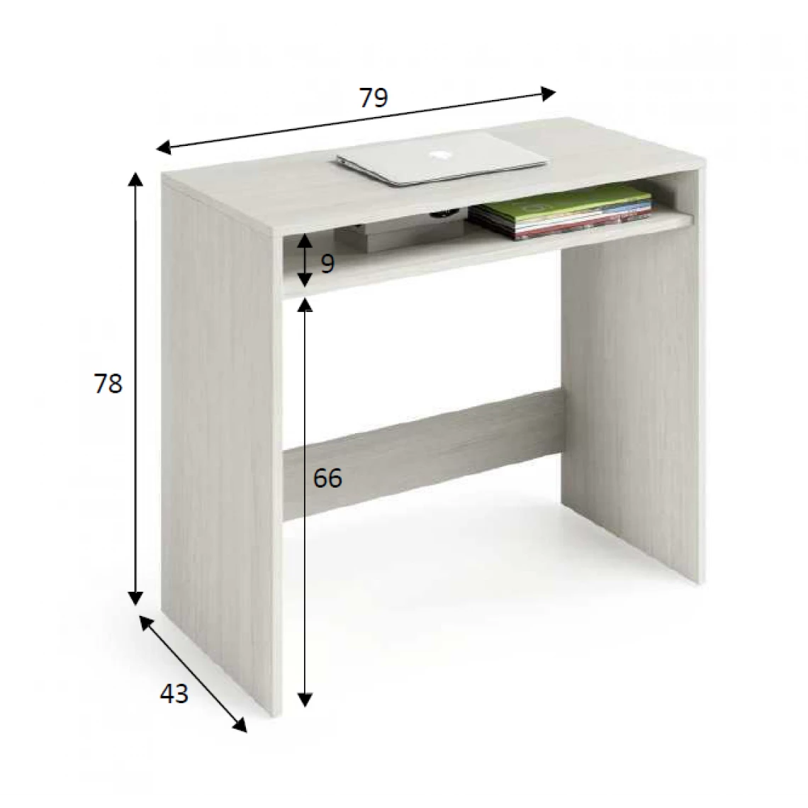 Bureau avec étagère fixe sous la table entièrement en blanc alpes, effet bois clair lisse. Bureau pratique à placer dans un environnement domestique pour le travail à domicile ou dans la chambre des enfants pour l’étude. Le compartiment qui est créé sous la table permet le placement ordonné de tous les objets nécessaires à la fois à l’étude et au travail, ses lignes simples et son design moderne lui permettent d’être placé dans n’importe quel environnement. Fabriqué entièrement en stratifié, il résiste aux chocs et aux rayures et est durable dans le temps. Mesure 79 x 87 x 43 cm