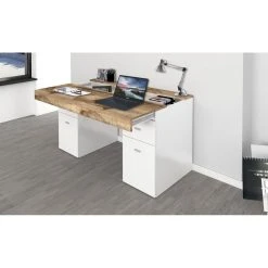 Points forts Alter Bureau avec tiroirs et plateau de rangement, Made in Italy, Table Minimal, bureau PC, cm 130x60h75, couleur blanc brillant et érable