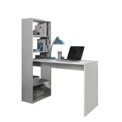 Points forts Alter Bureau réversible avec bibliothèque à cinq étagères, couleur blanche, Dimensions 120 x 144 x 53 cm