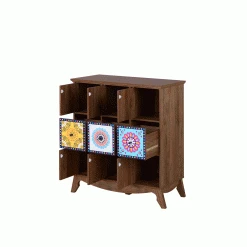 Si vous voulez ajouter du goĂ»t Ă votre intĂ©rieur, rien de plus attirant que cette commode unique d’inspiration marocaine. Avec son motif oriental multicolore Ă l’avant, elle illuminera instantanĂ©ment chaque salon, chambre ou couloir aussi bien traditionnel, moderne que boho. Mais ce buffet original n’est pas seulement un meuble dĂ©coratif, il vous offre aussi beaucoup d’espace de rangement pour vos câbles TV, toutes les petites pièces de votre garde-robe et bibelots divers. Une combinaison idĂ©ale de caractère et de fonctionnalitĂ©.