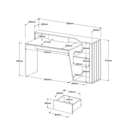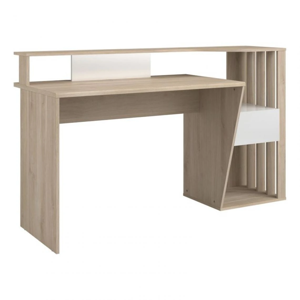 Structure :panneaux de particules. . Finition :papier dĂ©cor imitation chĂŞne et mĂ©laminĂ© blanc brillant. . Dimensions en cm :L. 156,5 – H. 91,7 – P. 60. . Dispo pcs detachees donnee fournisseur :NC. . Garantie :2 ans, pièces. . A monter soi-meme. . Montant (s) :claustra en panneaux de fibres de moyenne densitĂ©. .