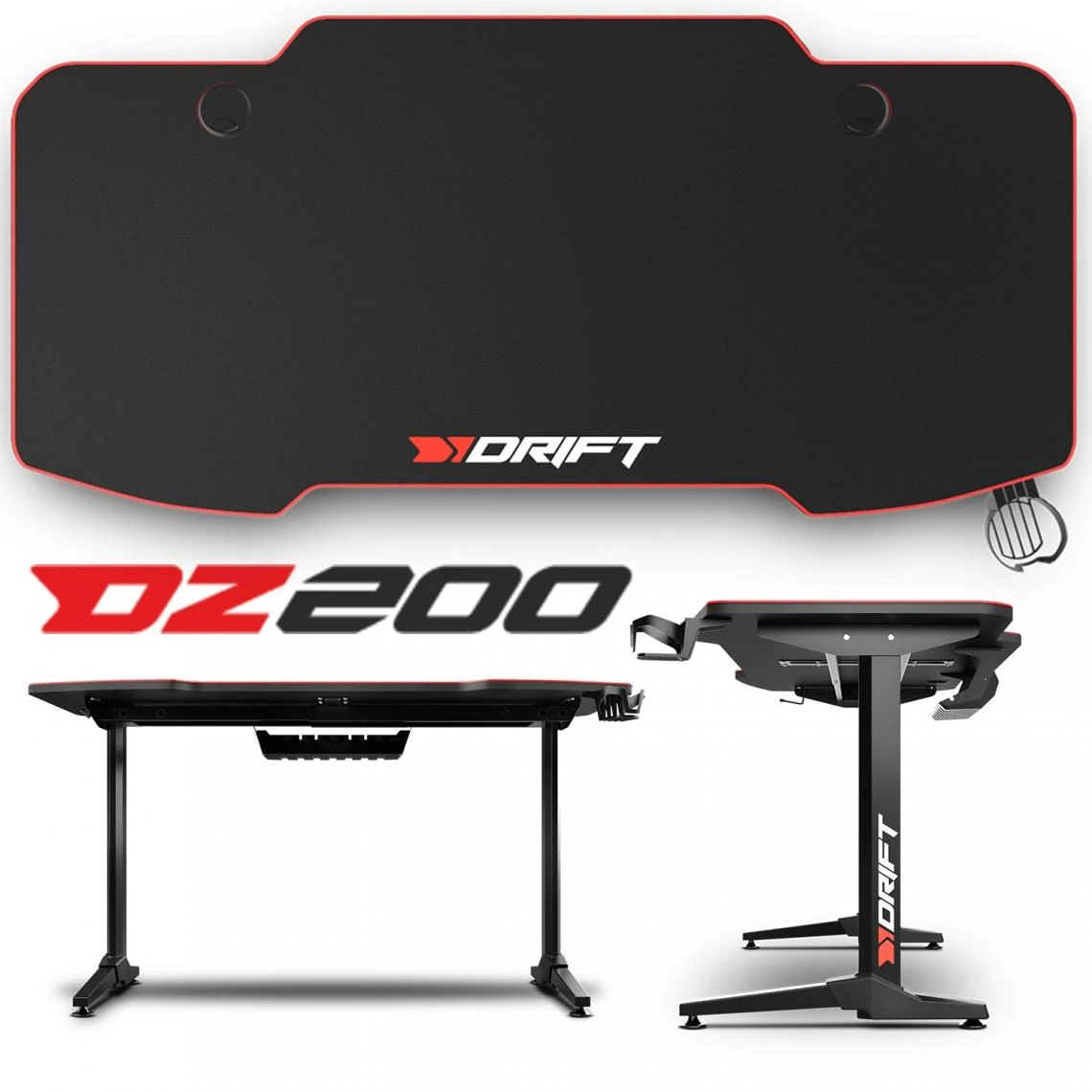 Points forts DRIFT Bureau gaming Drift DZ200, Plateau laminé en fibre de carbone + Tapis de souris XL + Porte gobelet + Support casque