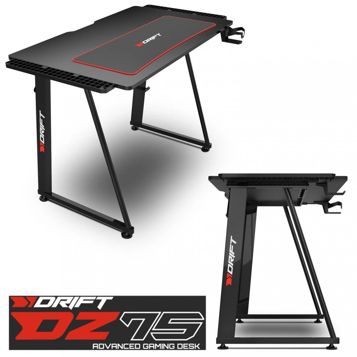 Points forts DRIFT Bureau gaming Drift DZ75 extensible, Plateau laminé en fibre de carbone + Tapis de souris XL + Porte gobelet + Support casque