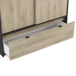 Teinte :imitation chĂȘne kronberg et ardoise. . Comprend :2 portes coulissantes, 1 penderie, 1 tiroir et 3 Ă©tagĂšres. . Garantie :2 ans , PiĂšces. . Structure :panneaux de particules revĂȘtus de papier dĂ©cor imitation chĂȘne kronberg et ardoise. IntĂ©rieur dĂ©cor imitation lin tissĂ©. DiffĂ©rents agencements des tablettes et de la barre de penderie possibles. . A monter soi-mĂȘme. . Dimensions en cm :L.119,9 – H. 193 – P. 55 cm. . Dispo pcs dĂ©tachĂ©es donnĂ©e fournisseur :NC. .