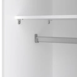 Structure :panneaux de particules revĂŞtus de papier dĂ©cor blanc. . Comprend :2 portes coulissantes. Une penderie + 2 Ă©tagères. . Dimensions en cm :L. 77,6 – H. 175,4 – P. 48,25 cm. . Dispo pcs detachees donnee fournisseur :NC. . Garantie :2 ans , Pièces. . A monter soi-meme. .