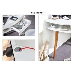 Fondez pour le look unique du bureau / console HOLM aux couleurs inspirĂ©es des tendances nordiques!. Malin, il dispose d’un passe-cables, de deux niches et d’un tiroir sous son plateau pour une installation idĂ©ale.. Afin d’optimiser votre intĂ©rieur de façon efficace, ce bureau d’angle sÂadapte parfaitement aux petits espaces.