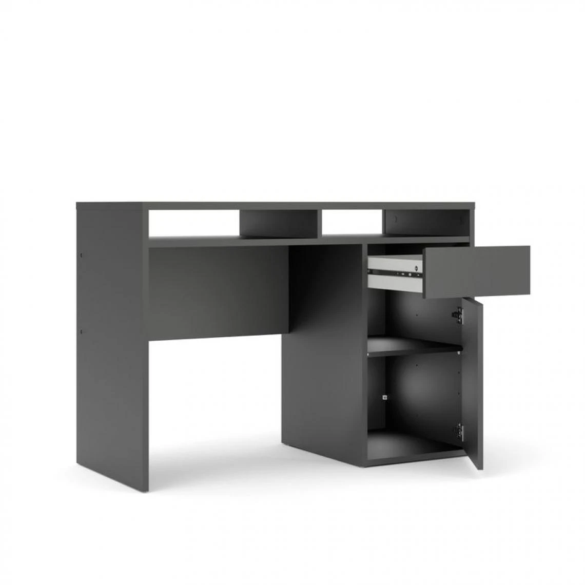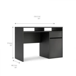 Un tiroir, une niche occupant toute la surface du plateau et un compartiment dotĂ© d’une porte, ce bureau BEST LAK 2 est pourvu d’espaces de rangement aussi nombreux que variĂ©s. C’est pourquoi, malgrĂ© ses dimensions standards, ce bureau 110,2 x 77,4 x 48,2 cm ne manque pas de praticitĂ©. Parfait pour un usage professionnel ou pour crĂ©er un coin bureau dans le salon, ce bureau droit se glisse partout ! Sa structure en panneaux de particules, d’une Ă©paisseur de 15 Ă 18 mm, est aussi robuste qu’elle est facile Ă dĂ©poussiĂ©rer, avec un chiffon microfibre.