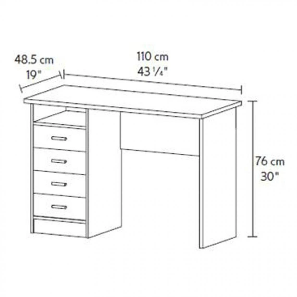 Ce bureau FUNCTION porte bien son nom. En effet, il se caractĂ©rise avant tout par sa fonctionnalitĂ©. Ses quatre tiroirs latĂ©raux, surmontĂ©s d’une niche de rangement, constituent autant de compartiments indispensables pour un espace de travail toujours en ordre. RĂ©partissez-y vos affaires afin de ne pas encombrer le plateau de ce bureau 110 x 76 x 48,5 cm, oĂą vous pourrez installer votre ordinateur tout en travaillant commodĂ©ment Ă vos dossiers. PlacĂ© sur le cĂ´tĂ©, le bloc tiroirs libère suffisamment de place sous ce bureau droit pour vous permettre de vous installer confortablement.