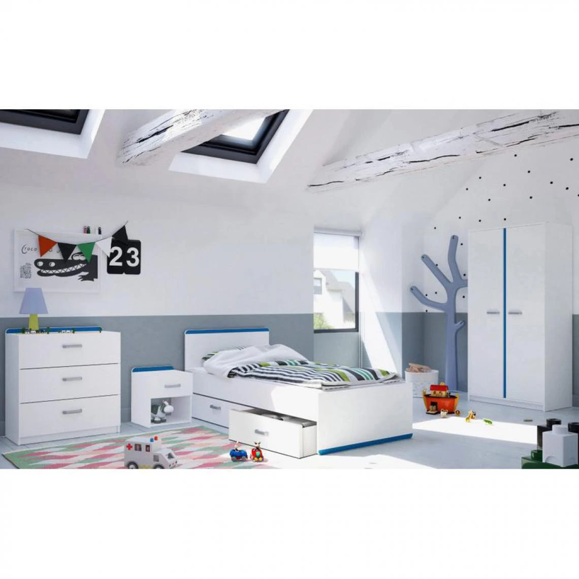Tiroirs :4 . Finition :papier dĂ©cor blanc. . Structure :en panneaux de particules. . Dimensions en cm : L. 110 – H. 76 – P. 48,5 cm. . Dispo pcs dĂ©tachĂ©es donnĂ©e fournisseur :NC. .