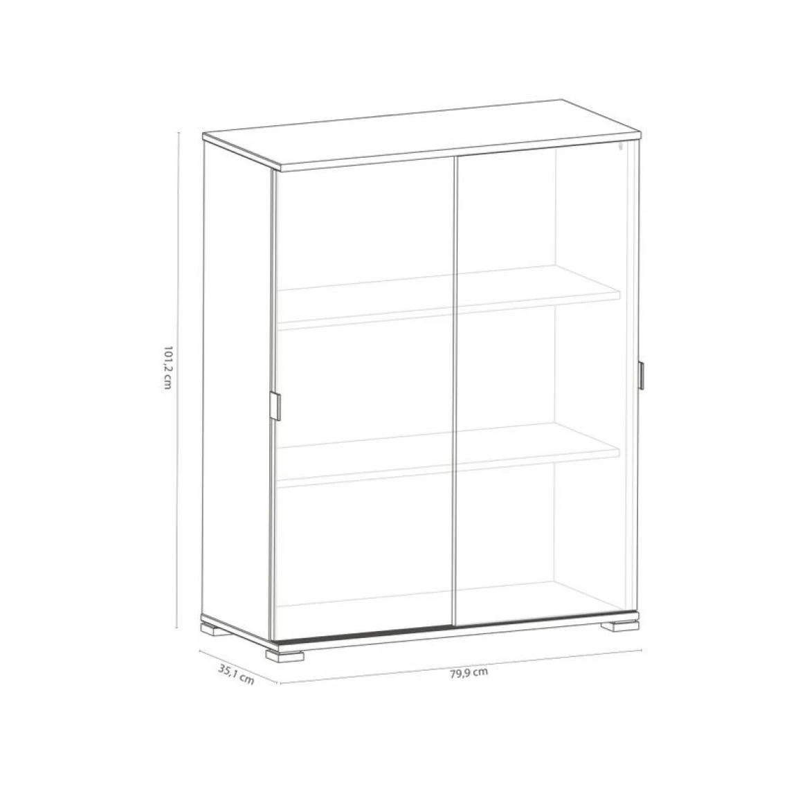 Portes :2 portes coulissantes. . Teinte :imitation chêne kronberg. . Garantie :2 ans , Pièces. . Tablette :2 rayons réglables sur 3 niveaux. . Structure :en panneaux de particules revêtus de papier décor. Intérieur lin tissé. . A monter soi-même. . Dimensions en cm :L. 79,9 – H. 101,2 – P. 35,1 cm. . Dispo pcs détachées donnée fournisseur :NC. .