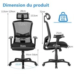 Notre chaise de bureau en maille combine un design ergonomique, des sièges confortables et une apparence élégante en un seul. Avec un appui-tête réglable, un soutien lombaire, des accoudoirs et un siège, la chaise peut soulager efficacement la fatigue corporelle et offrir un meilleur soutien. Le dossier inclinable est verrouillable sur 2 positions (90°, 107°) pour s’adapter à différents besoins. De plus, le dossier en maille ainsi que le siège rembourré en éponge maintiennent une bonne circulation de l’air pour un confort maximal.