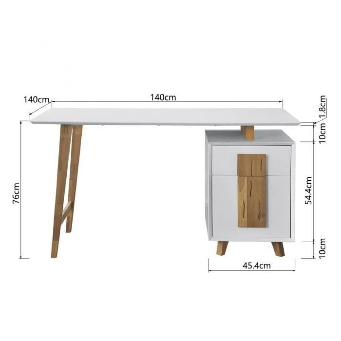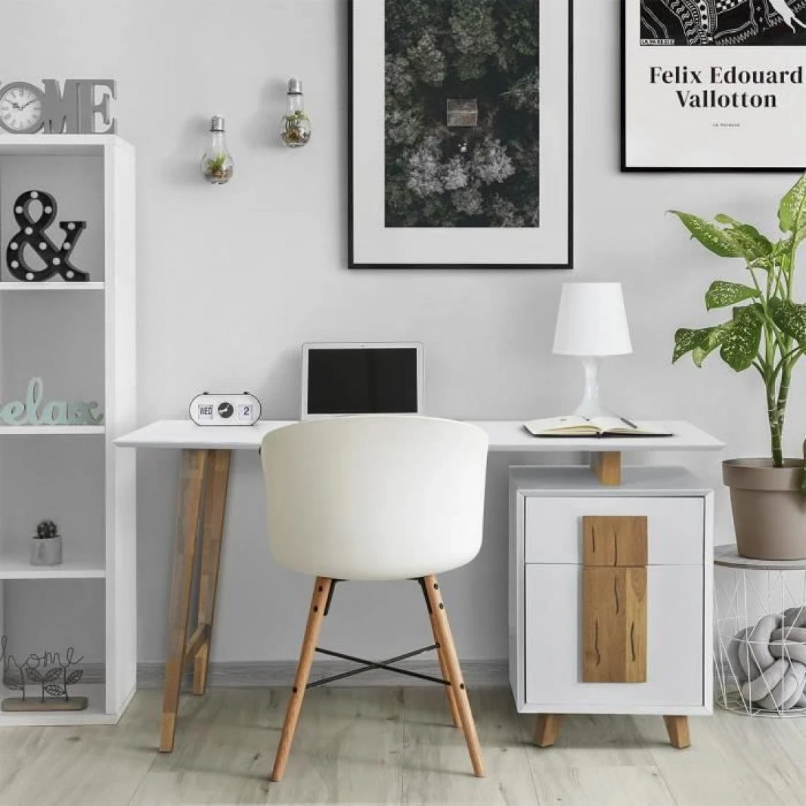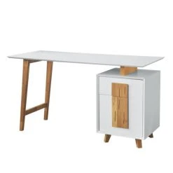 Bureau 1 porte 1 tiroir – DĂ©cor bois et blanc – L 140 x P 76 x H 60 – HAMBOURG.