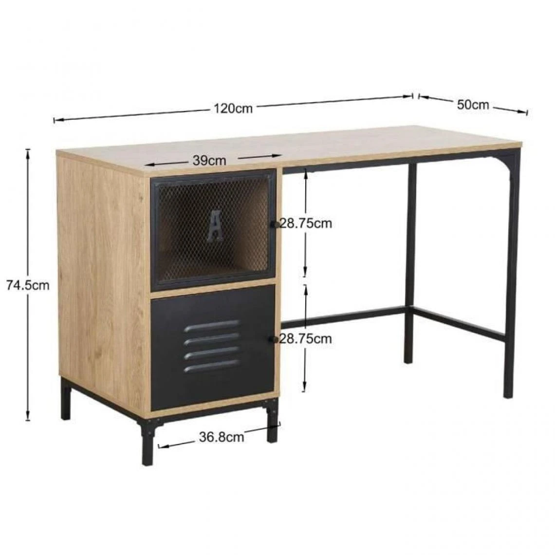 Bureau de travail 2 portes en mĂ©tal – Pieds noir – ARTY – L120 X P50 X H75