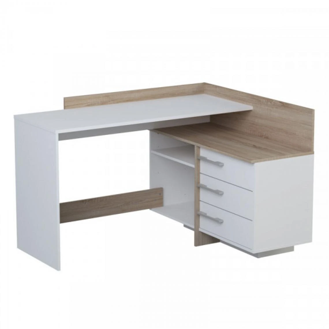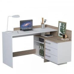 Bureau d’angle rĂ©versible 3 tiroirs Blanc/ChĂŞne contemporain