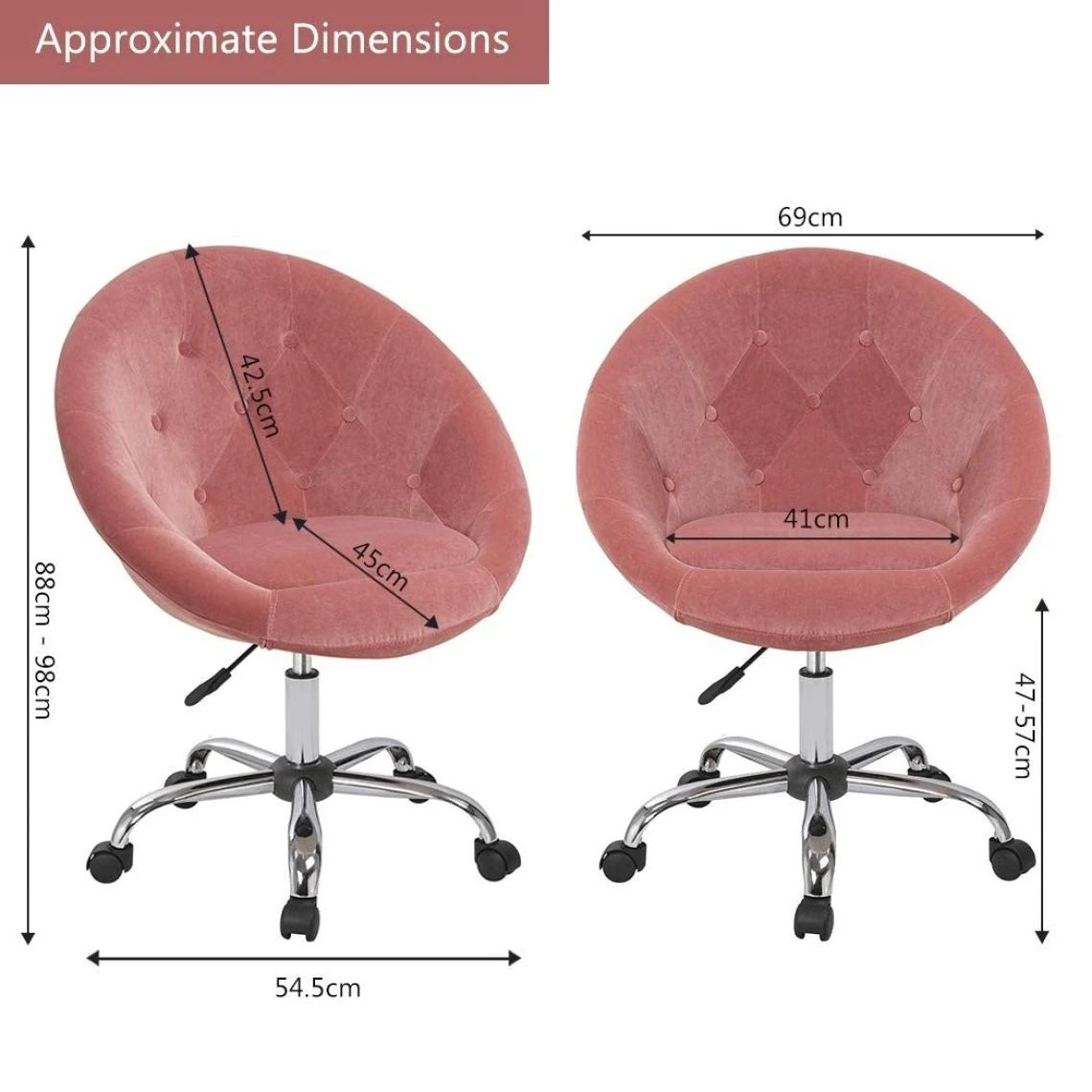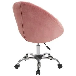 Points forts Decoshop26 Fauteuil à roulette tissu velours rose tabouret chaise de bureau BUR09077