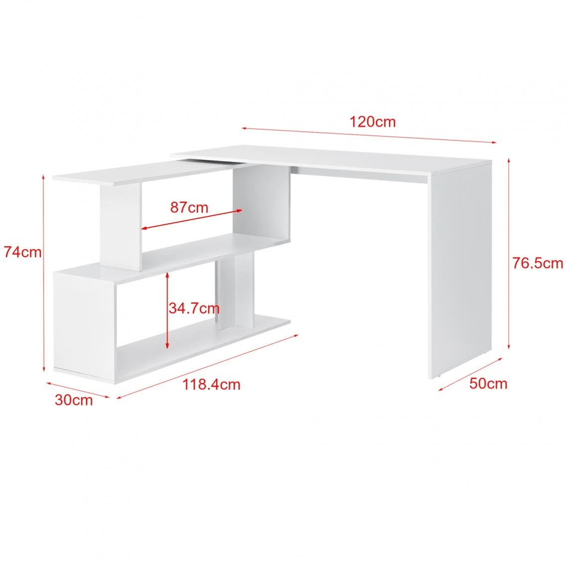 – la partie étagère permet d’étendre le bureau et en faire un meuble de coin
