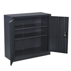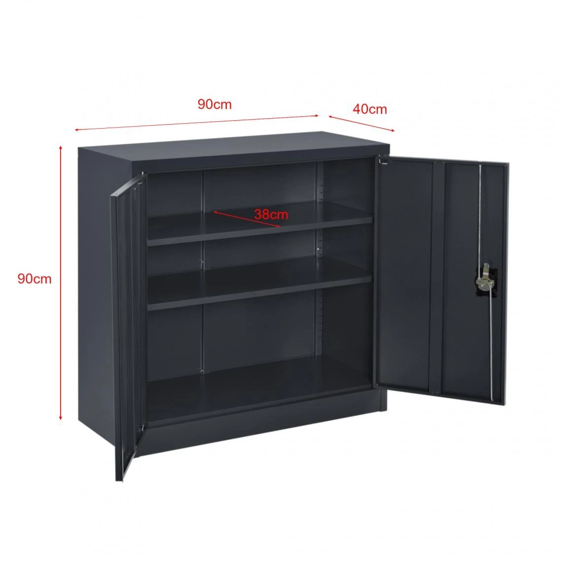 Rangez les classeurs et fermez la porte Ă clĂ© – vous serez le seul Ă avoir l’accès au placard. Ce meuble de rangement inclut deux Ă©tagères qui vous offrent des grands espaces de stockage non seulement pour les fournitures de bureau mais pour vos affaires personnelles telles que livres, bouteilles, outils ou autres aussi.
