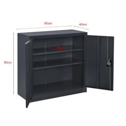 Points forts En.Casa Placard de bureau Molise verrouillable à 2 portes 90 x 40 x 90 cm gris foncé [en.casa]