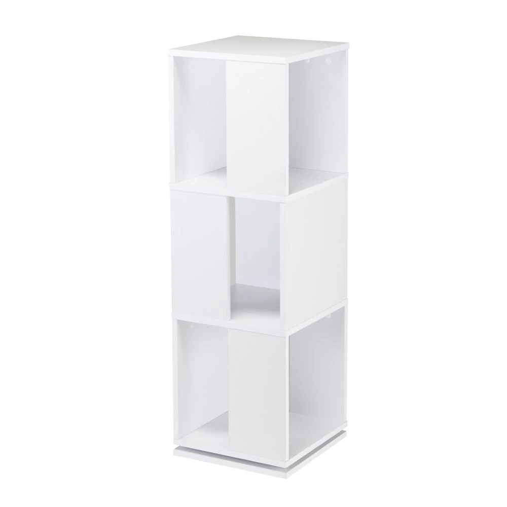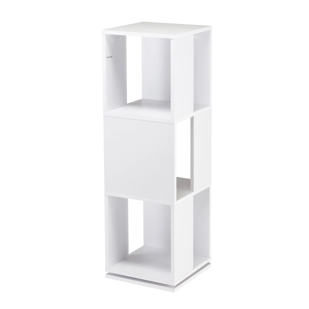 Tour de rangement pivotante coloris blanc. Idéale pour compléter votre mobilier ! Elle trouvera sa place dans une chambre, dans un bureau ou même dans votre salon !