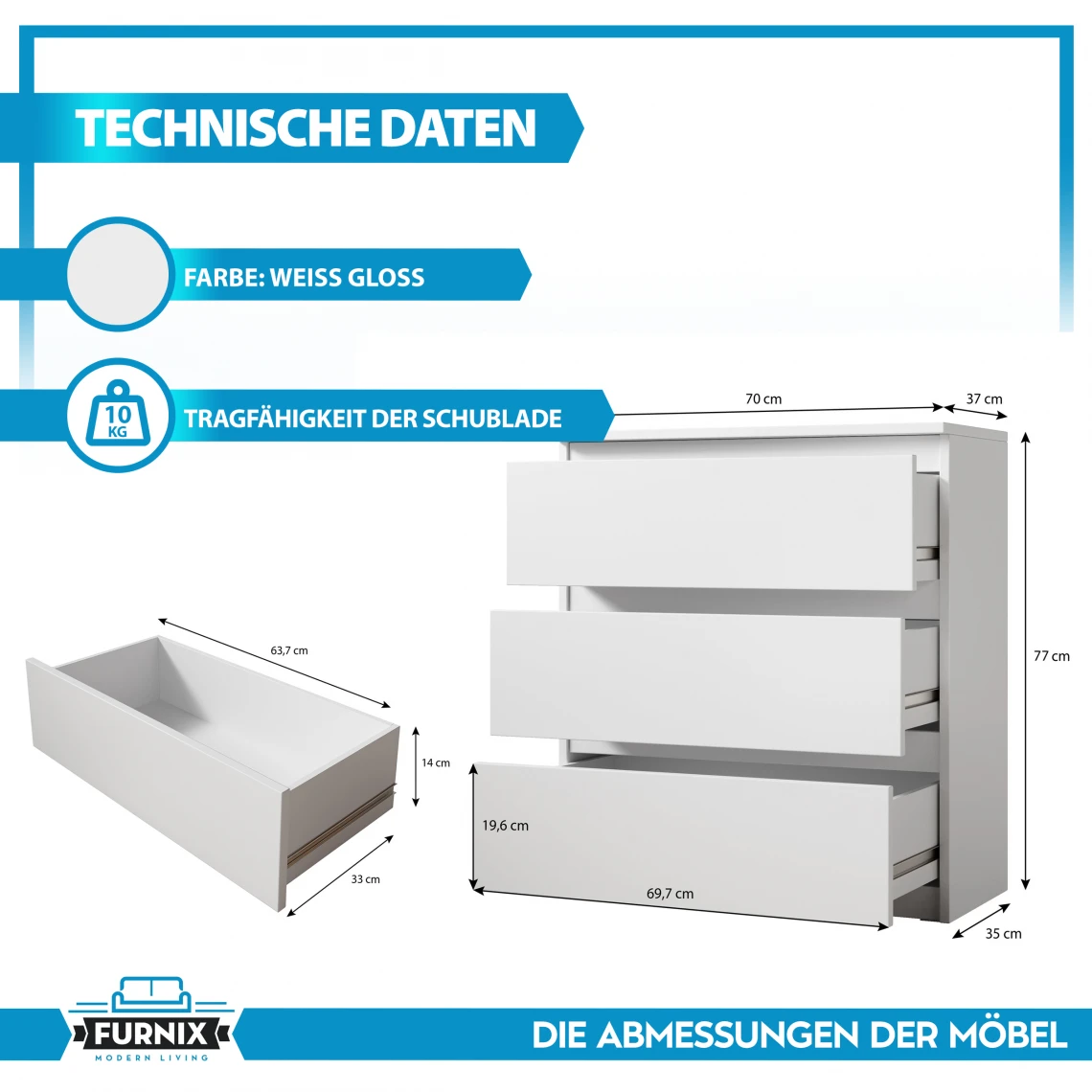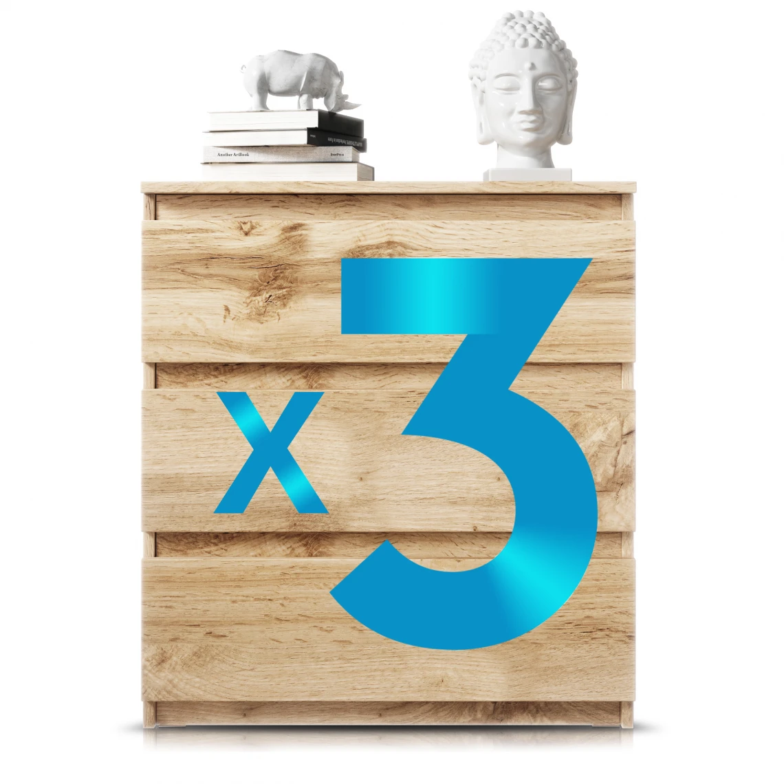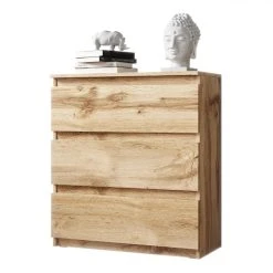 Points forts Furnix Furnix Commode / Meuble de rangement ARENAL avec 3 tiroirs 70 x 37 x 76 cm chĂŞne wotan style moderne