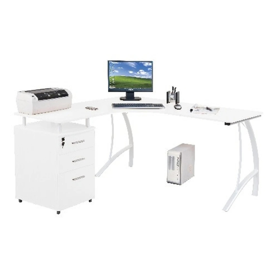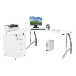 Points forts Hjh Office Bureau d’angle CASTOR avec caisson à tiroirs fixe, blanc laqué haute brillance hjh OFFICE