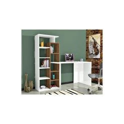 Points forts Homemania HOMEMANIA Bureau Poly avec Bibliothèque Intégrée – avec Étagères – pour Bureau, Chambre – Noyer, Blanc en Bois, 181,8 x 60 x 148,2 cm