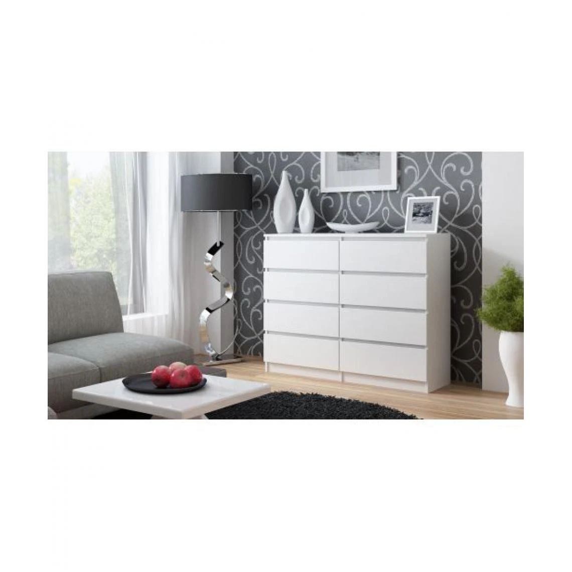 Commode moderne de la collection MILAN trouvera sa place dans chaque intĂ©rieur. Pratique, elle dispose d’un bel espace de rangement avec ses huit tiroirs. Son allure minimaliste rĂ©pondra aux attentes de tous ceux qui apprĂ©cient l’alliance de la simplicitĂ© et de l’Ă©lĂ©gance. Les façades de tiroirs sans poignĂ©es assurent un confort d’utilisation et accentuent son caractère contemporain. POINTS FORTS: 8 tiroirs, Faces sans poignĂ©es, Bords ABS, Fonctionnelle et moderne, Grande capacitĂ© de rangement, Finition: blanc mat, CARACTÉRISTIQUES TECHNIQUES: Dimensions: 40x120x97, Structure en panneaux de particules mĂ©laminĂ©s 16 mm, RĂ©sistante aux rayures et Ă l’humiditĂ©, Assemblage aisĂ©, FabriquĂ©e en Europe, Facile Ă nettoyer