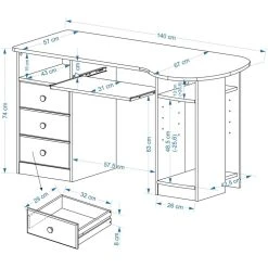 … est très fonctionnel avec ses nombreux rangements. Il pourra accueillir facilement votre ordinateur car un emplacement est spĂ©cialement dĂ©diĂ© Ă l’unitĂ© centrale. Enfin, son grand plateau très pratique vous permettra de travailler dans de bonnes conditions.