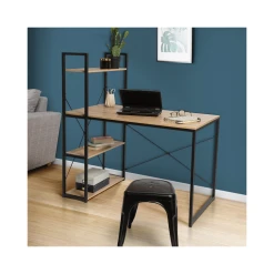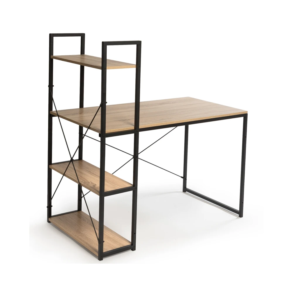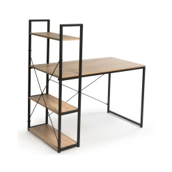 Descriptif du bureau DETROIT design industriel :Le design du bureau style industriel s’inspire des usines et de leurs ateliers. Les constructions massives et les matĂ©riaux bruts caractĂ©risent le monde industriel. Zoom sur l’ADN de bureau industriel pas cher. Les lignes et le style Ă©purĂ© donnent Ă votre intĂ©rieur un aspect loft du meilleur effet. Votre bureau trouve rapidement sa place chez vous car vous pouvez l’intĂ©grer Ă diffĂ©rents styles d’intĂ©rieur en renforçant le cĂ´tĂ© loft ou au contraire en donnant un peu de chaleur Ă son design.Le bureau bois mĂ©tal industriel est dotĂ© d’un long plateau très pratique en particules de bois d’une longueur de 113 cm sur 60 cm de large. Il est idĂ©al pour travailler confortablement, disposer vos pots Ă crayons, trier vos documents sans gĂŞne et installer votre poste d’ordinateur sur le large espace de travail.Fonctionnel, grâce Ă ses 3 Ă©tagères en bois maxi capacitĂ©, vous pouvez ranger vos livres, classeurs, boĂ®tes de rangement, disposer vos objets de dĂ©coration favoris et laisser libre votre espace de travail sur le bureau!Les plateaux de 15 mm d’Ă©paisseur sont soutenus par une solide structure mĂ©tallique qui vous assure soliditĂ© et stabilitĂ© au quotidien. Les croisillons transversaux en mĂ©tal d’une longueur d’1 mètre apportent un renfort supplĂ©mentaire Ă l’Ă©tagère pour une stabilitĂ© optimum. La haute rĂ©sistance des matĂ©riaux assure Ă votre bureau une excellente durĂ©e de vie.Au-delĂ de son cĂ´tĂ© authentique et robuste, ses proportions gĂ©nĂ©reuses en font un bureau fonctionnel qui pourra s’insĂ©rer dans les petits comme les grands espaces de vie.DĂ©couvrez dès maintenant les finitions particulièrement soignĂ©es du bureau industriel DETROIT Ă prix mini.Sublimez votre intĂ©rieur avec ses matĂ©riaux bruts, ses formes simples et l’alliance du bois et du mĂ©tal.Laissez entrer le style industriel si tendance dans votre intĂ©rieur avec notre bureau bi-matière en mĂ©tal et bois!Pratique et dĂ©co, ce meuble modernisera votre salon ou votre bureau!Dimensions du bureau DETROIT design industriel :Dimensions globales hors-tout : L.113 x l.60 x H.120 cmDimensions du bureau : L.113 x l.60 x H.73 cmDimensions de l’Ă©tagère : L 64 x l.24 x H.120 cmPlateau en particules de bois : Ă©paisseur 1,5 cmDĂ©couvrez toute notre collection DETROIT sur notre site internet :Collection DETROIT