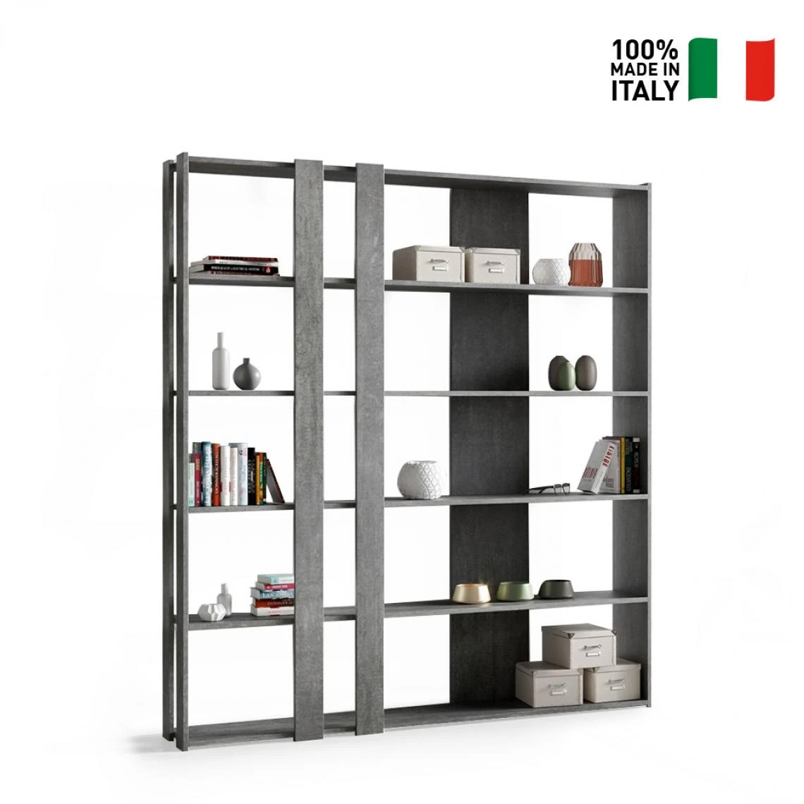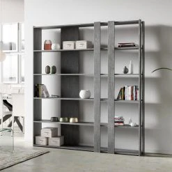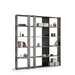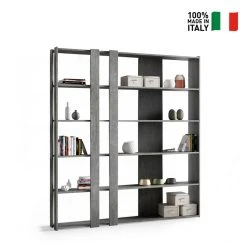 Entièrement fabriquée en Italie avec l’utilisation de matériaux de première qualité, grâce à son design minimaliste, la bibliothèque Kato C Concrete décore le mur de manière élégante et trouve sa place dans n’importe quel espace de vie, du bureau au salon, des espaces plus grands aux plus petits, ce meuble est également parfait pour être placé au centre de la pièce pour séparer un environnement. Les larges et hautes étagères ouvertes disposées sur différents niveaux peuvent accueillir une vaste collection de livres tout en offrant un maximum d’espace pour les objets, souvenirs, plantes d’intérieur, œuvres d’art, cadres et tout autre élément de la maison digne d’attention; le tout avec une profondeur minimale. En effet, l’encombrement est particulièrement réduit, seulement 34 cm de profondeur et permet d’optimiser les espaces même dans un environnement de travail. Les étagères intermédiaires sont reliées aux côtés latéraux et aux bandes centrales fixes et non réglables qui rendent la bibliothèque particulièrement robuste et résistante à différentes sollicitations.