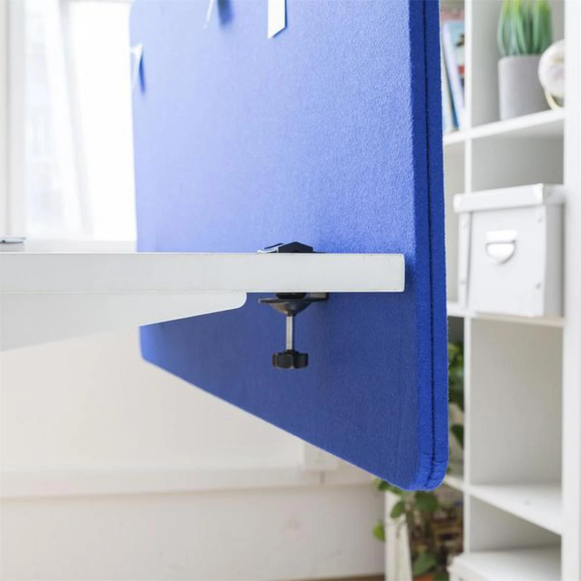 Panneau acoustique de bureau 160 x 60cm, Bleu IdĂ©al pour les tâches nĂ©cessitant de la concentration, ce panneau permet une sĂ©paration esthĂ©tique des postes de travail partagĂ©s, et crĂ©e naturellement une zone de confort pour vos collaborateurs, il est tout Ă fait recommandĂ© pour ĂŞtre installĂ© sur un bureau motorisĂ© KIMEX. Avantages : Solution esthĂ©tique et facile Ă installer en bord de table Dispose de 2 Ă©triers rĂ©glables (jusqu’Ă 3,5 cm) et espacĂ©s de 60 cm Finition en feutre pour un cadre de travail calme et agrĂ©able en assurant l’intimitĂ© de vos collaborateurs
