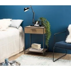 Points forts MACABANE Chevet 1 tiroir 1 étagère teck et métal CARLA