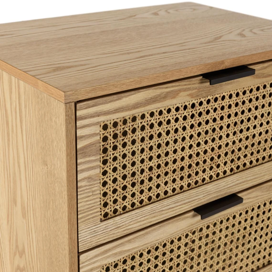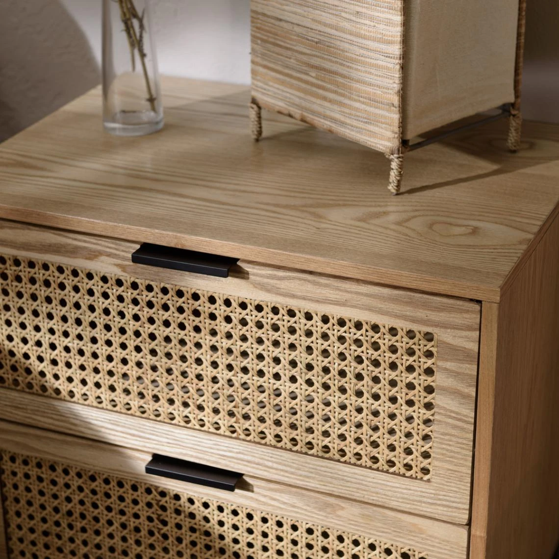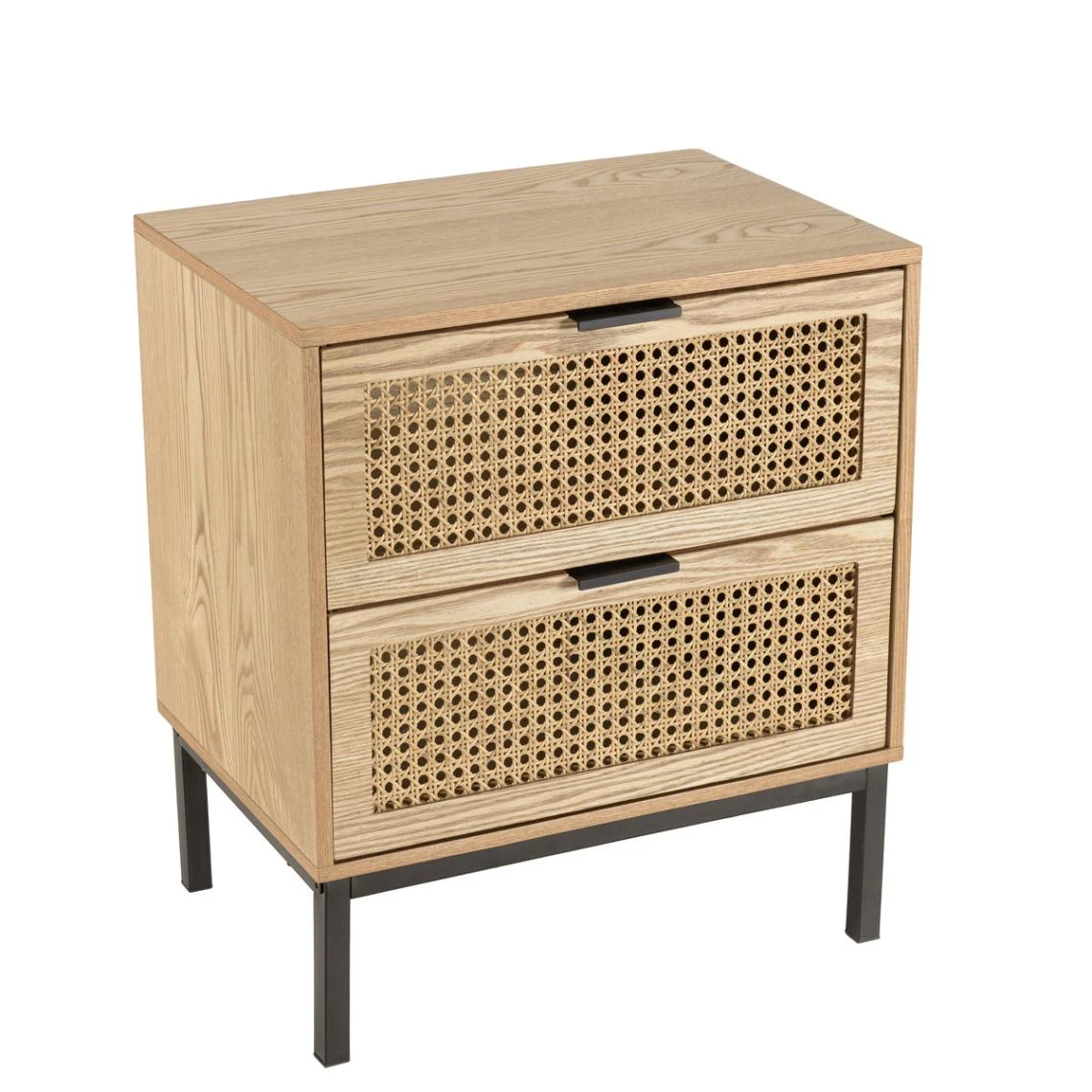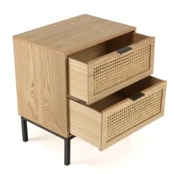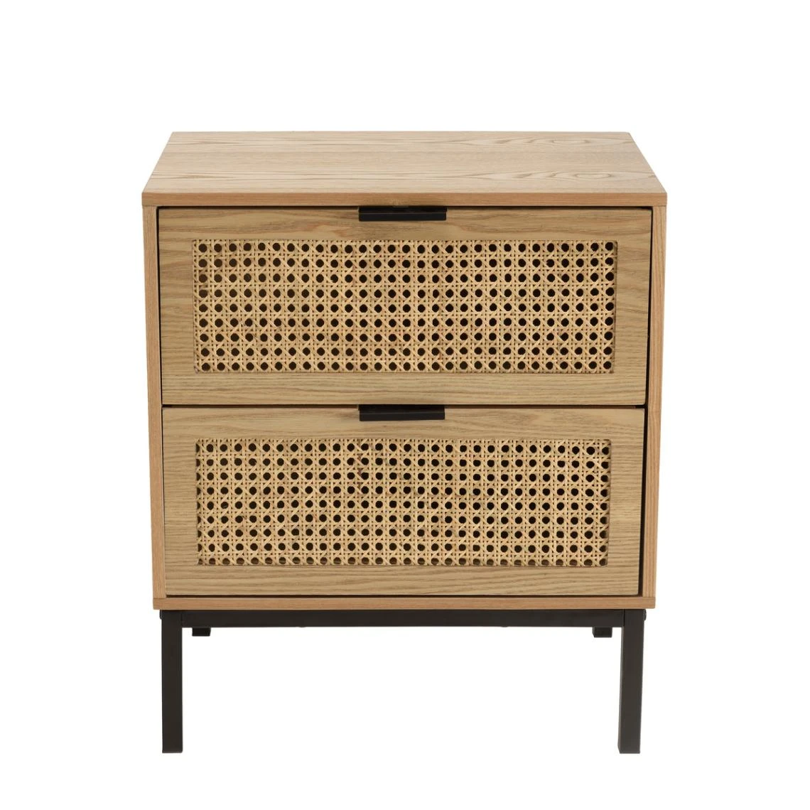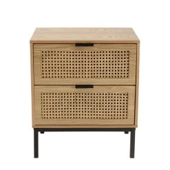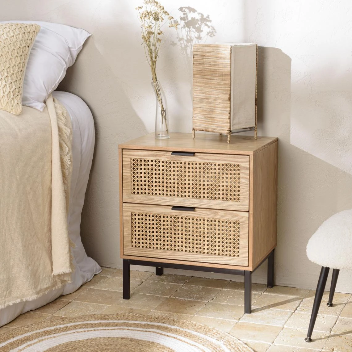 Points forts MACABANE Chevet 2 tiroirs cannage naturel pieds métal noir MARCEAU