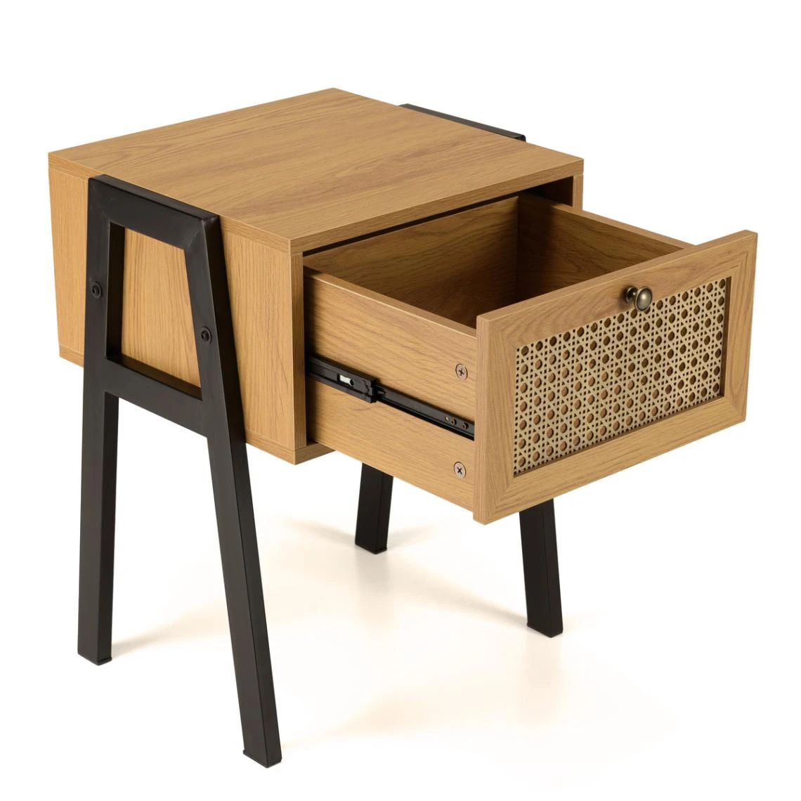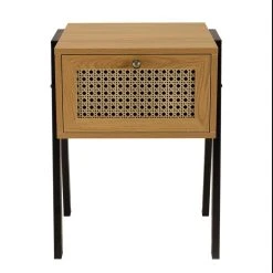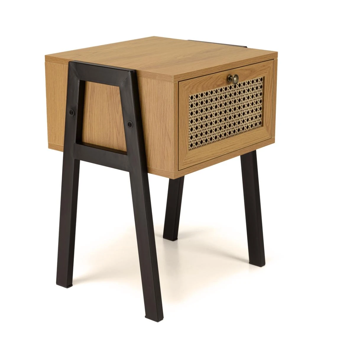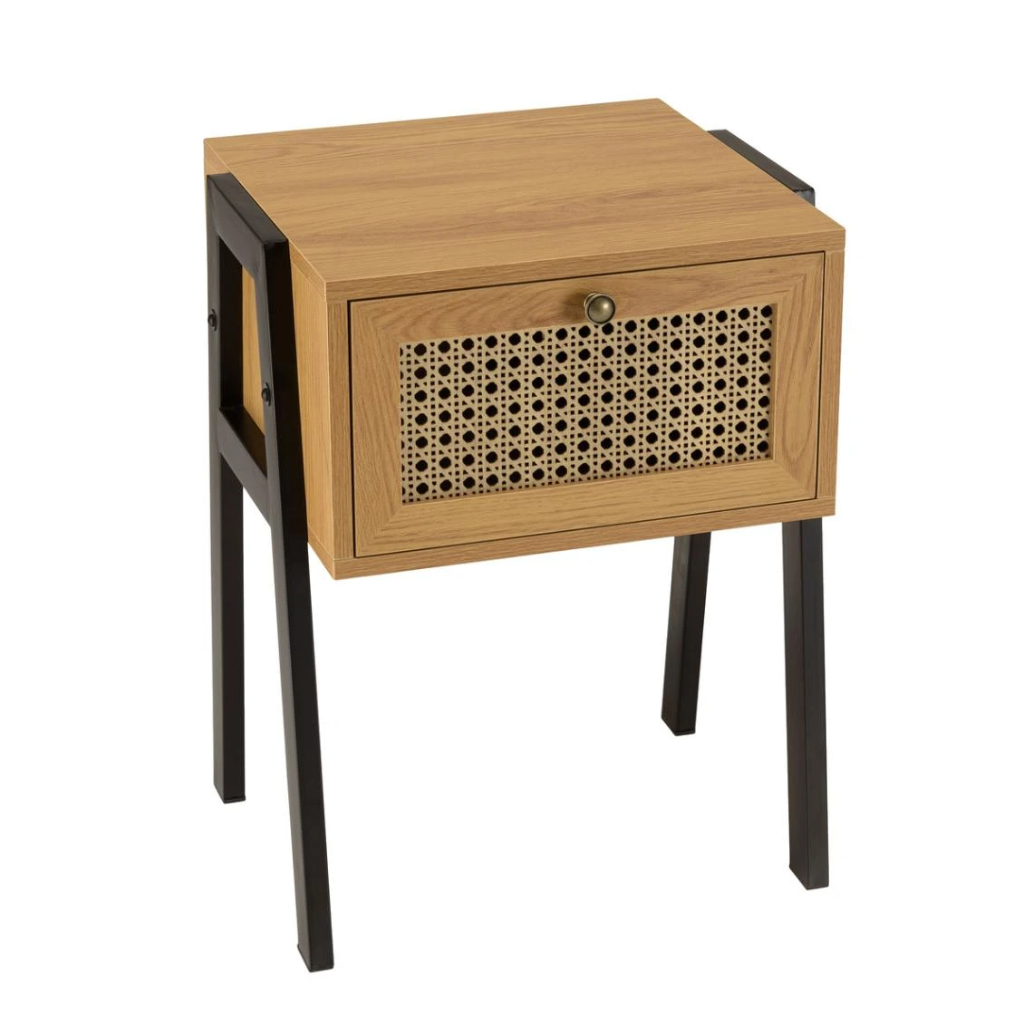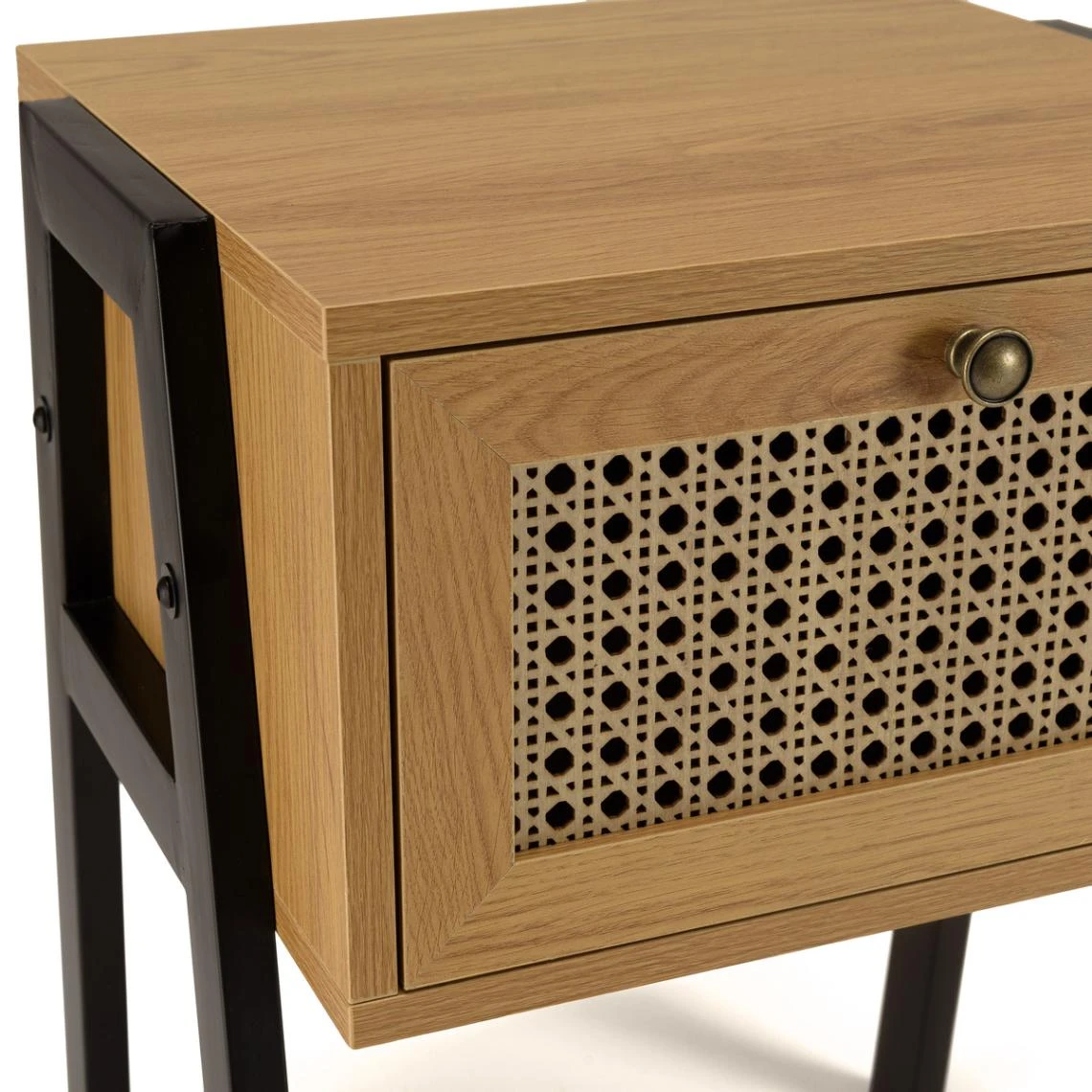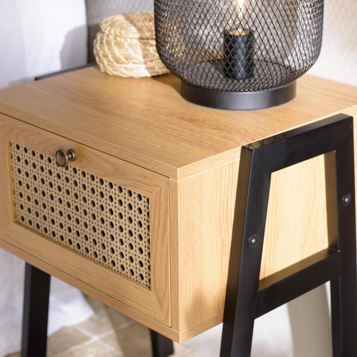 Points forts MACABANE Chevet marron 1 tiroir effet cannage pieds inclinés métal CHARLIE