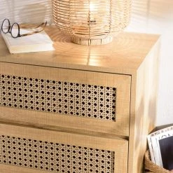 Imaginez ce magnifique Chevet marron 2 tiroirs effet cannage pieds métal noir CHARLIE dans votre chambre. Avec sa teinte marron et son design nordique, il est parfait pour ajouter une touche naturelle à votre décoration. Fonctionnel, il possède deux grands tiroirs de rangement.