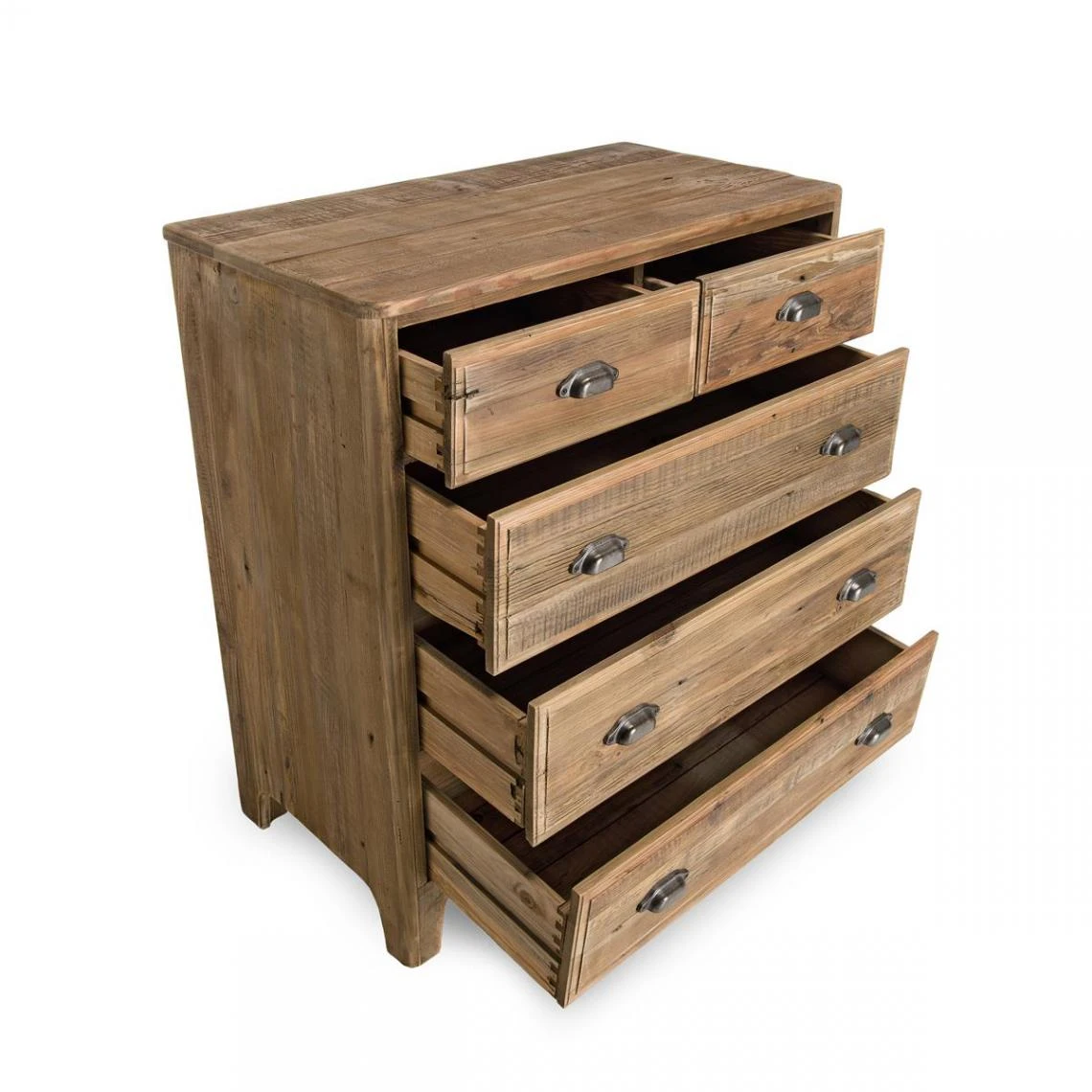 Ce Meuble Chiffonnier ANDRIAN 5 Tiroirs Bois Pin RecyclĂ© est très fonctionnel. Grâce Ă ses 5 tiroirs, vous disposerez d’une grande capacitĂ© de rangement. Ses lignes Ă©purĂ©es et sa teinte brute apporteront de la chaleur Ă votre intĂ©rieur.