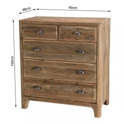 Points forts MACABANE Meuble Chiffonnier ANDRIAN 5 Tiroirs Bois Pin Recyclé