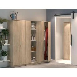Armoire en panneaux de particules et mélamine haute densité coloris cambrian avec 2 portes de 3 étagères (Tablette supérieur réglable en hauteur). Produit de fabrication Espagnol certifié PEFC. Livré en kit.