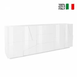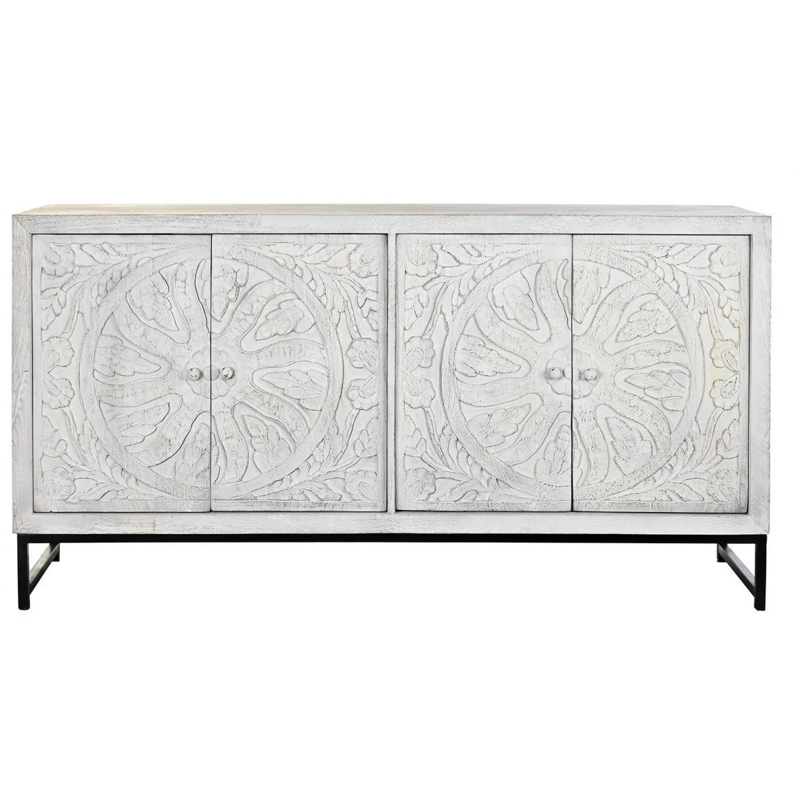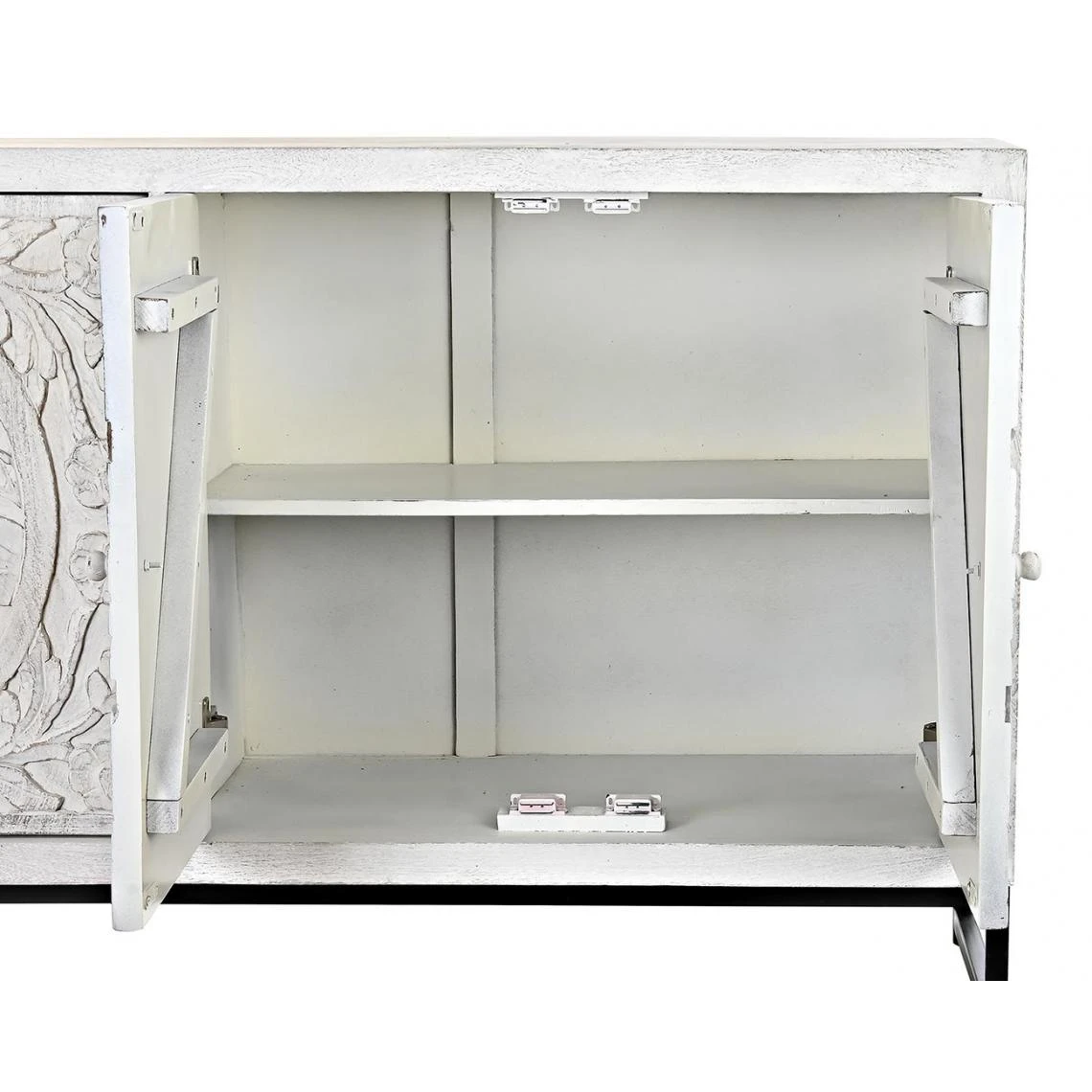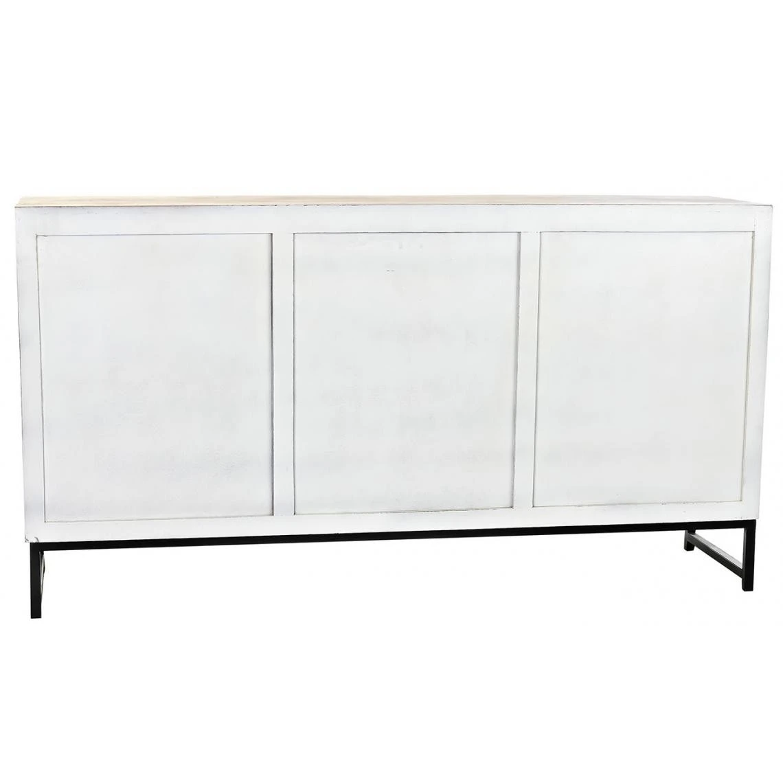 Buffet / Meuble de rangement en bois de manguier coloris blanc et métal noir de 4 portes.
