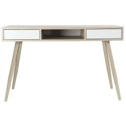 Bureau en MDF naturel / blanc et métal de 2 tiroirs et 1 niche.