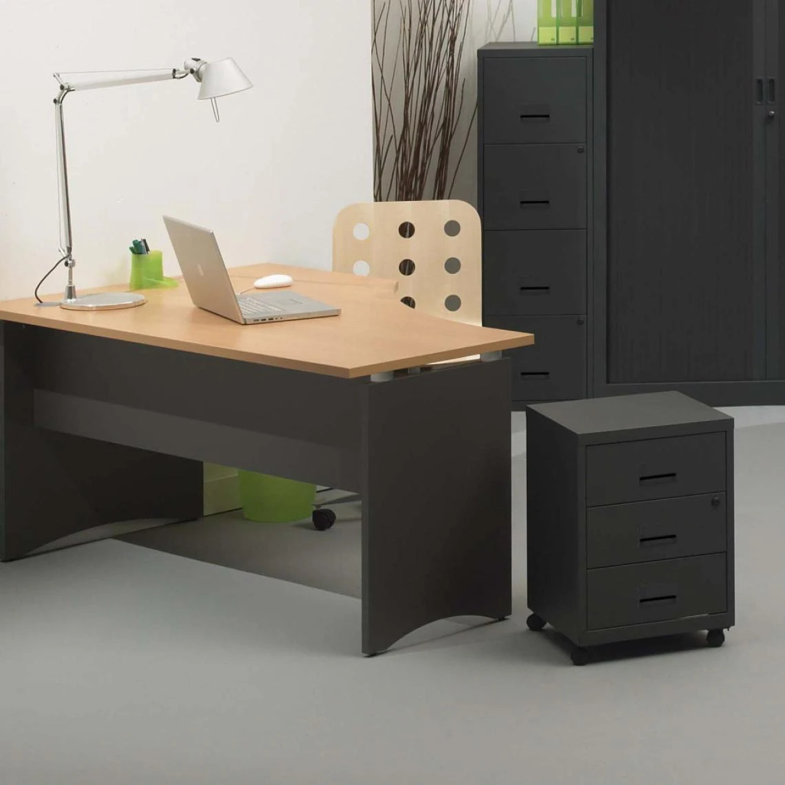 Points forts Pierre Henry Caisson de rangement 3 tiroirs en acier sur roulettes anthracite.