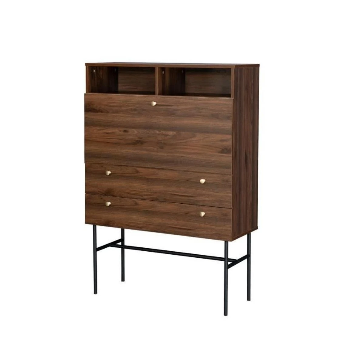 Points forts Sans Marque Secrétaire 1 porte battante 2 tiroirs – Bois et métal – L 90 x P 35 x H 110 – LODGE