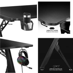 Points forts Spirit Of Gamers Bureau Gaming Headquarter 200 – Design Futuriste – 4 Pieds RĂ©glables – Effet Carbone – Plateau XL…