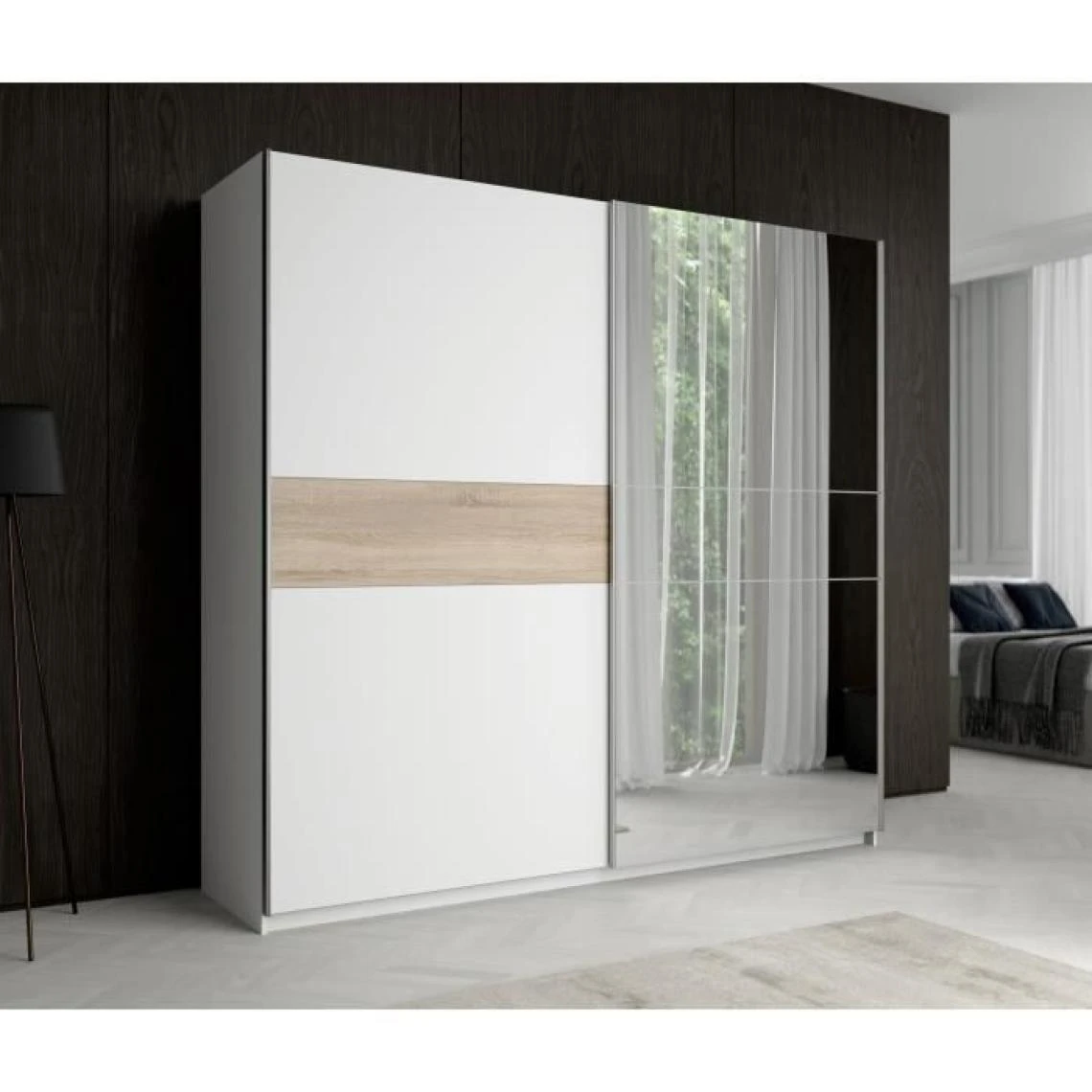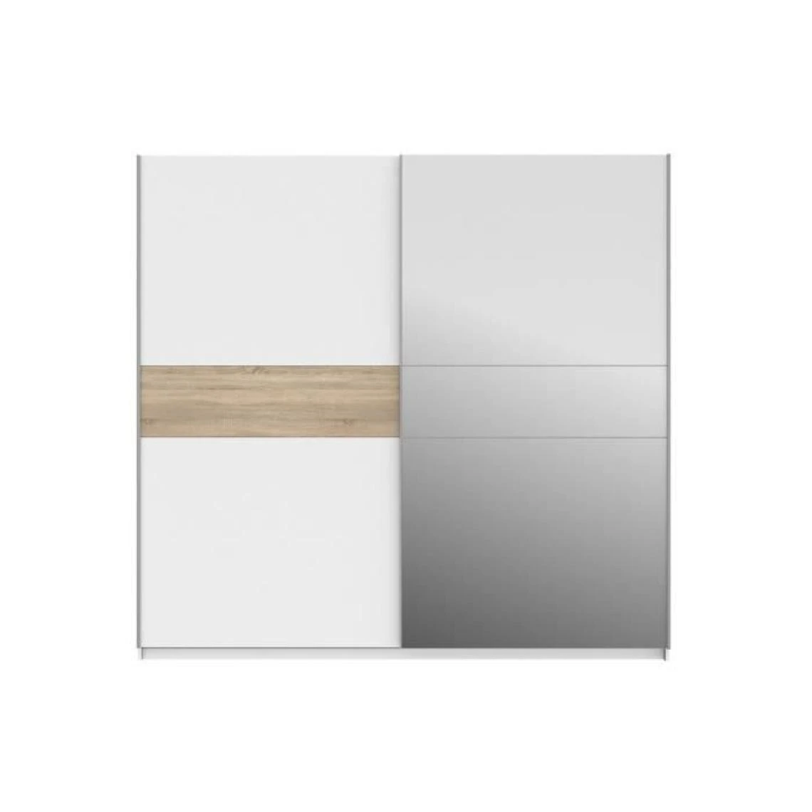 Points forts Tbs Armoire 2 portes coulissantes + miroir – DĂ©cor Blanc et Sonoma – L 220,1 x P 61,2 x H 209,7 – ATOS