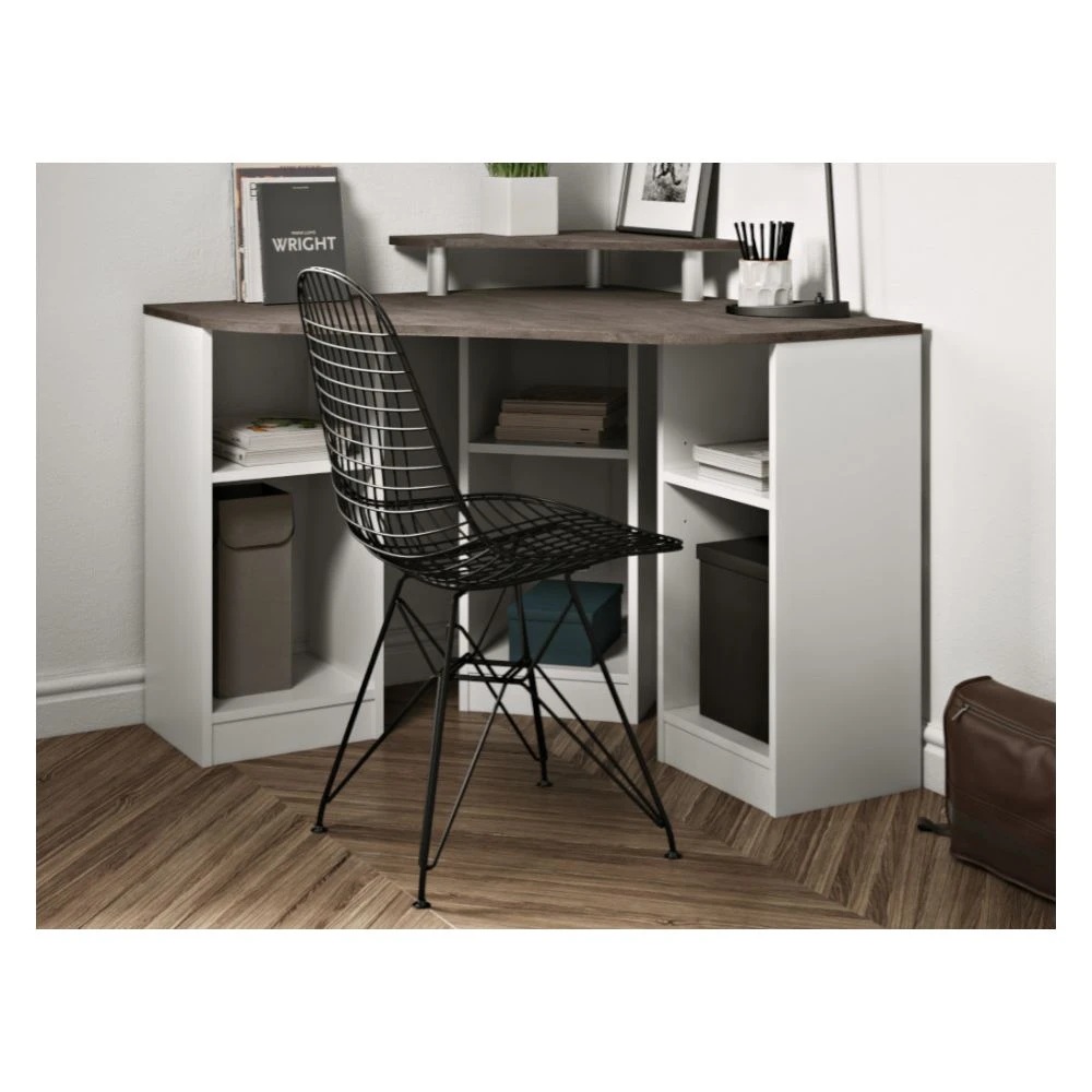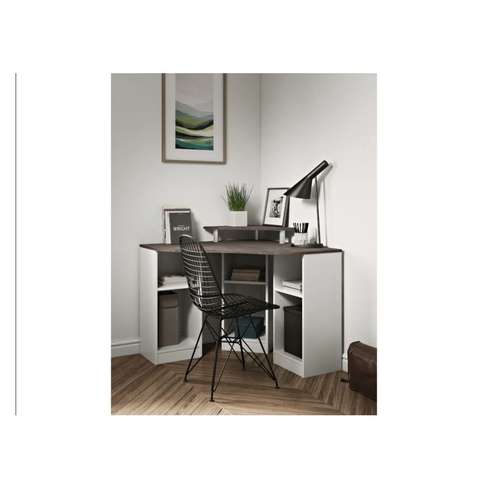 Le bureau d’angle CORNER apporte de belles fonctionnalitĂ©s Ă votre espace de travail. Ce bureau avec des rangements ouverts et sa rĂ©hausse pour Ă©cran d’ordinateur. Sa forme arrondit permet de maximiser la place de votre intĂ©rieur.
