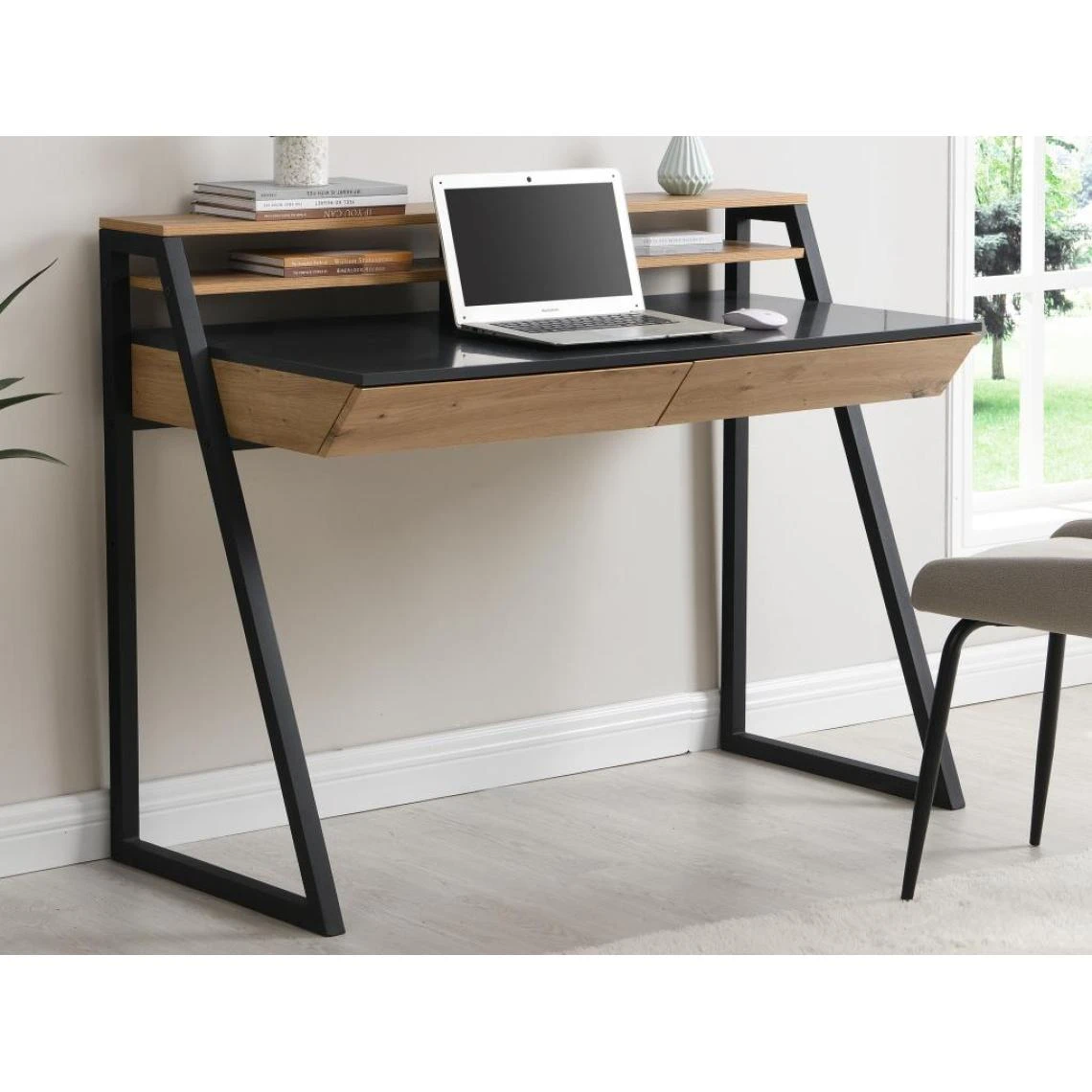 Points forts Vente-Unique Bureau avec rangements – MDF et MĂ©tal – Noir et naturel – SAMERI